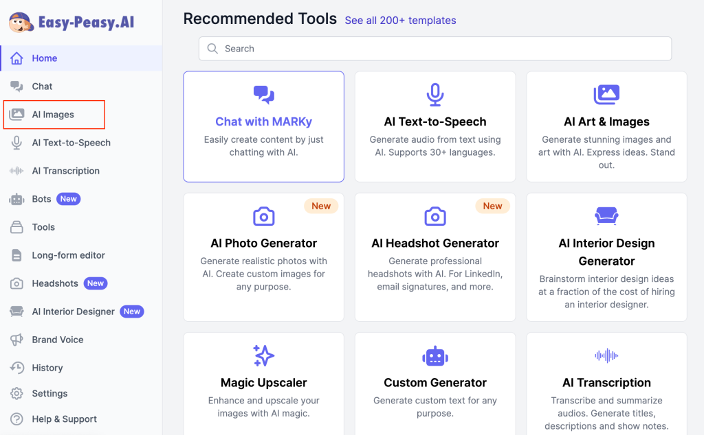 2. Navigate to the AI Image Generator: Click on the AI Images icon.