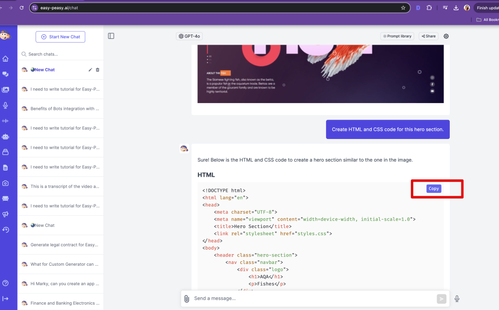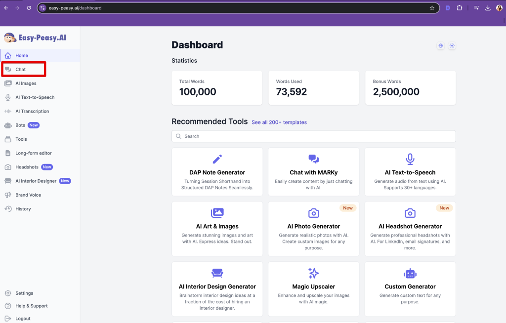 - Log in to Easy-Peasy.AI and head to your dashboard.