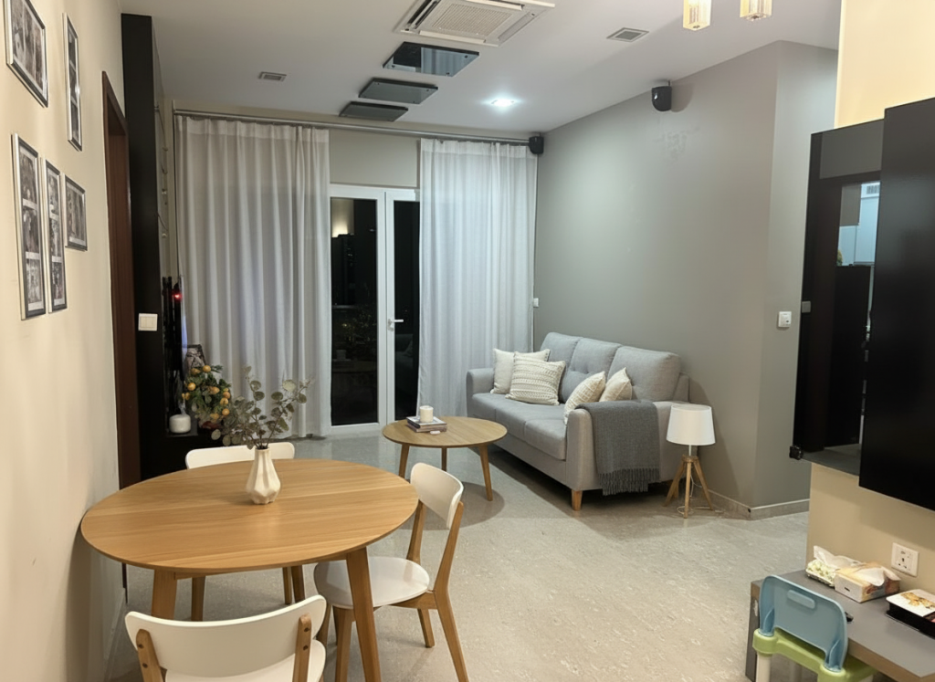 - ‘Replace the coffee table with a glass one and add potted plants on the windowsill.’