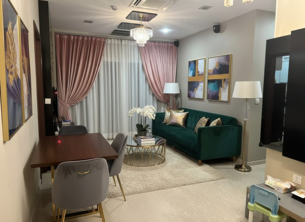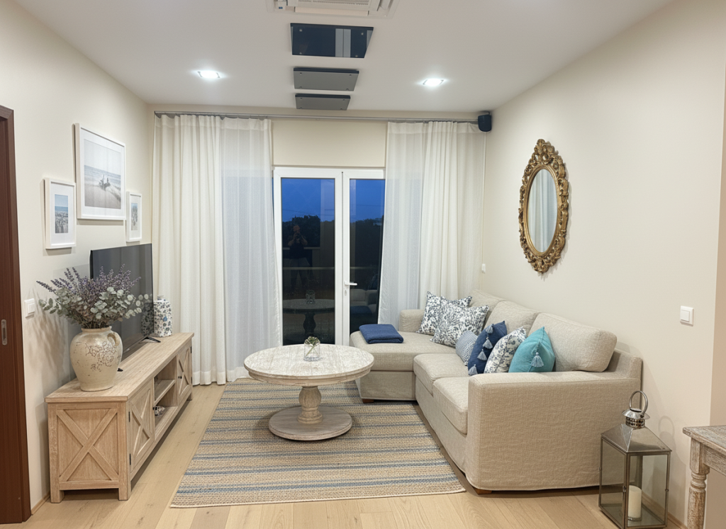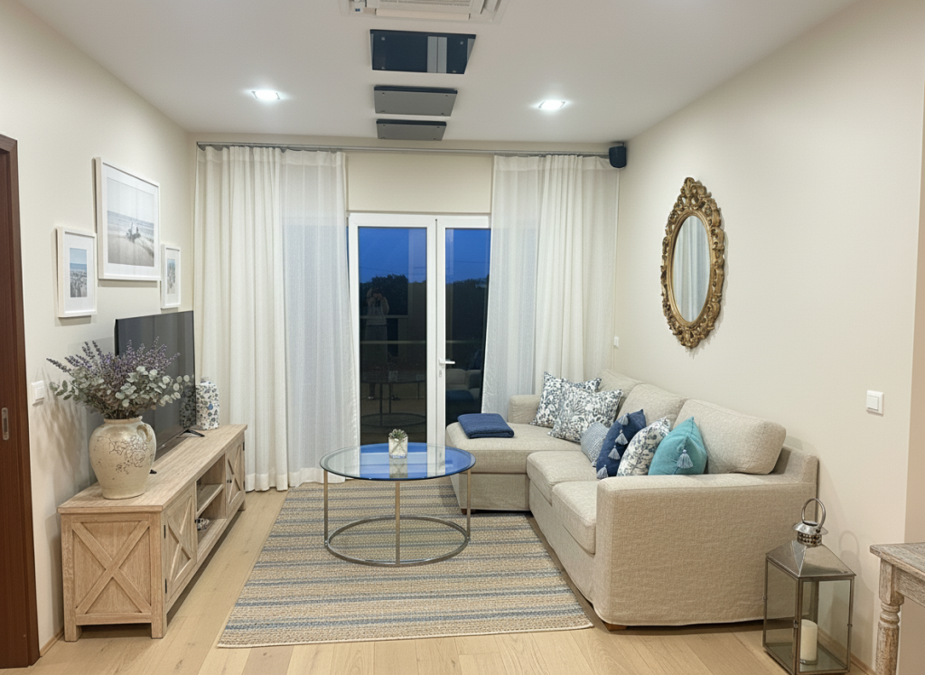 - ‘Smooth zoom in to showcase the living room furniture and lighting.’