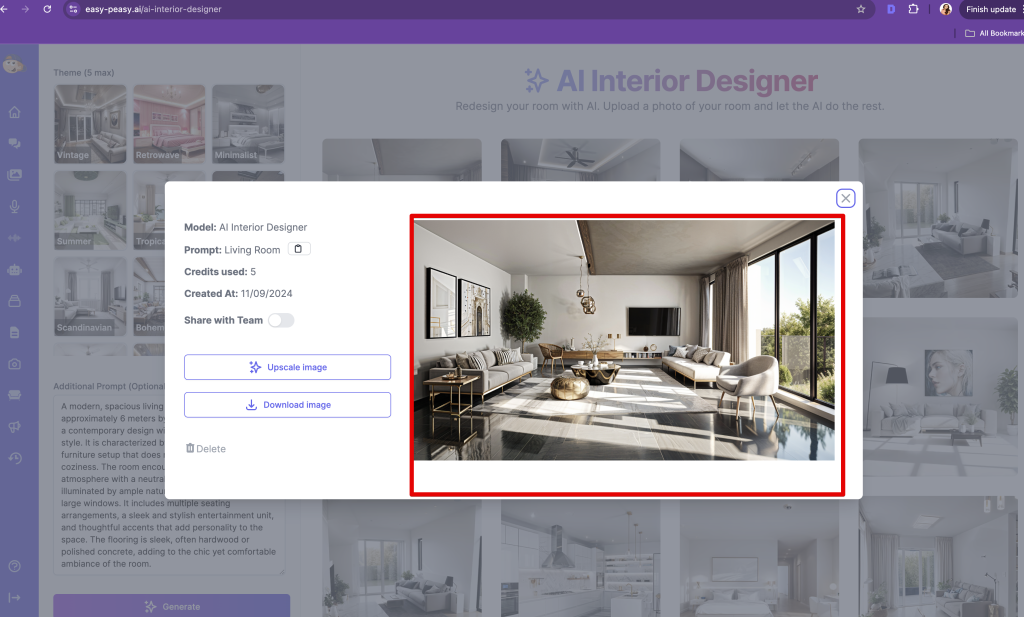 To Access the AI Interior Designer you first need to sign into your Easy-Peasy.AI account. If you don’t have an account, you can create one for free.