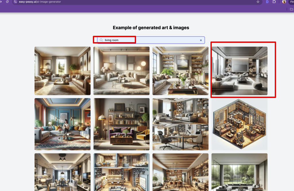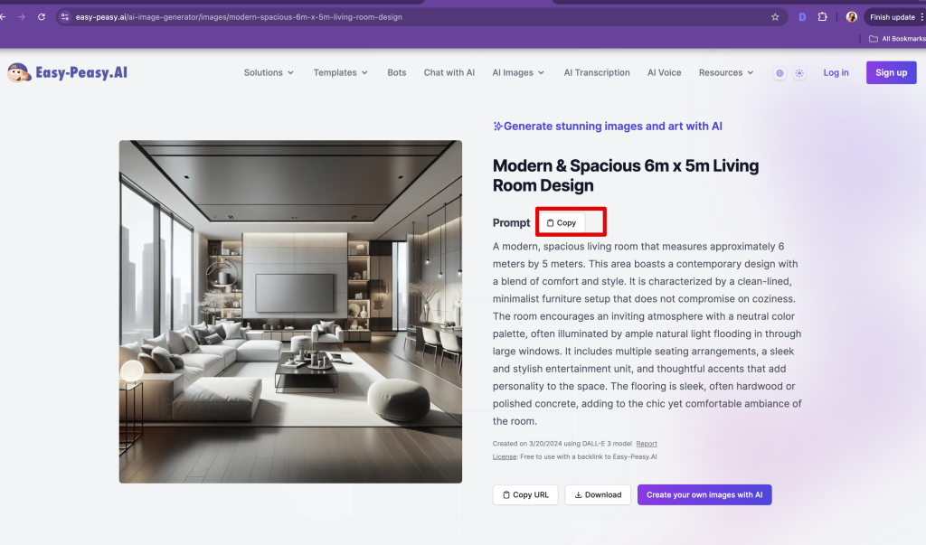- Search for a design you like (for example, Modern Living Room), copy the prompt associated with it.