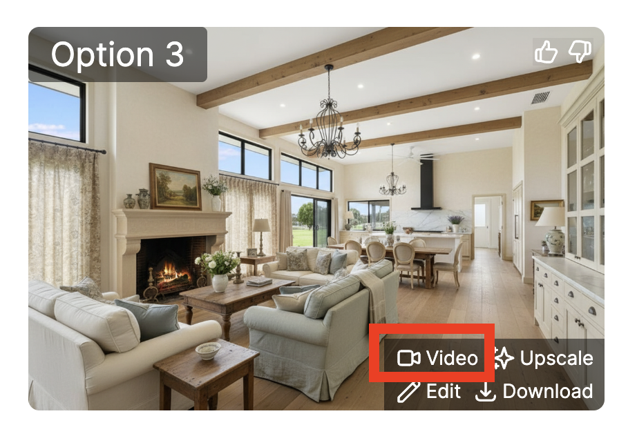 Once you’ve generated an image in any mode (Edit, Restyle, or Generate), you can bring your design to life with a dynamic 3D flythrough video.