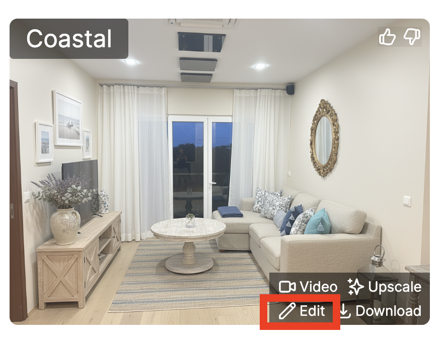 - On the generated image (from any mode), click the Edit icon to open the further edit modal.