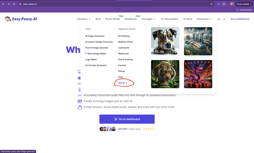 To Access the AI Interior Designer you first need to sign into your Easy-Peasy.AI account. If you don’t have an account, you can create one for free.
