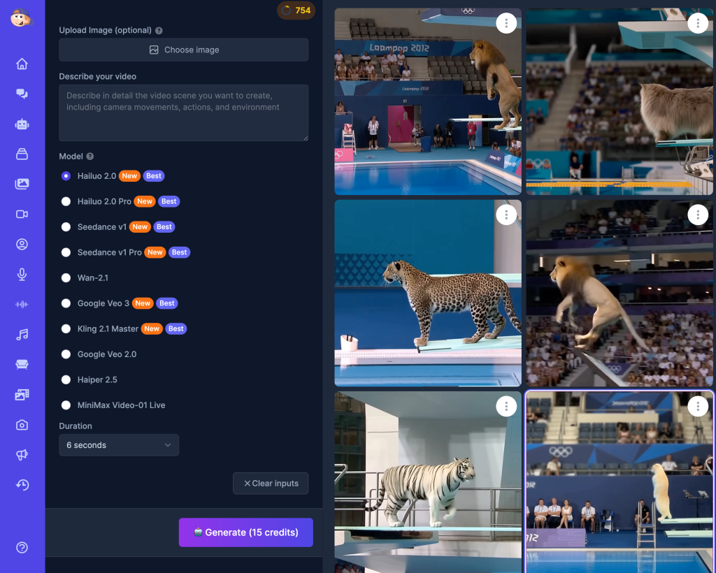 After extensive testing, Hailuo AI 02 emerged as our champion. Its ability to render natural-looking motion, especially for complex actions like diving and jumping, was unmatched.