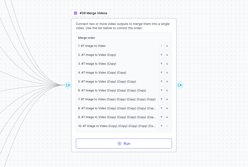 - Connect all your Image-to-Video outputs to the Merge Videos input