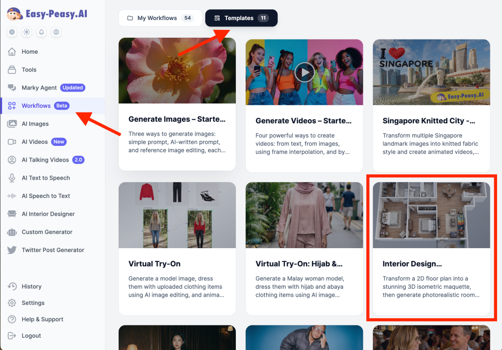 Ready to try it yourself? Head over to Easy-Peasy.AI Workflows, find the Interior Design Visualization template, and start transforming your floor plans today.