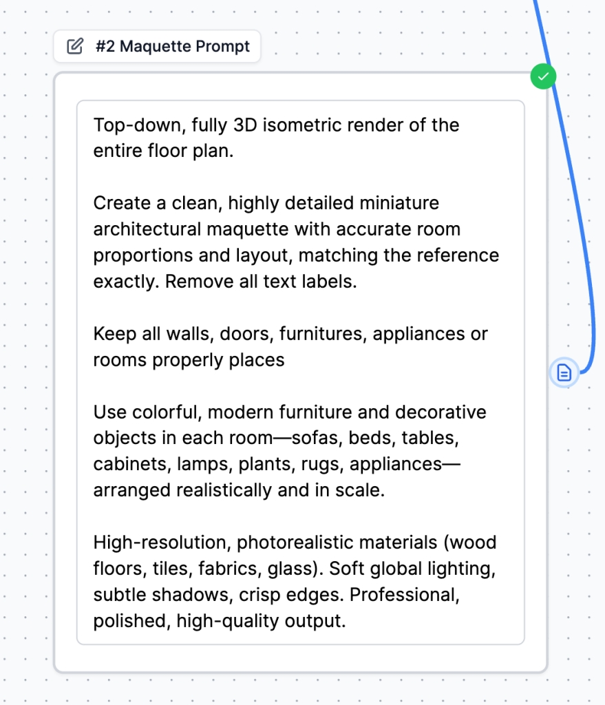 This transformation is powered by a carefully crafted prompt (stored in the #2 Maquette Prompt node):