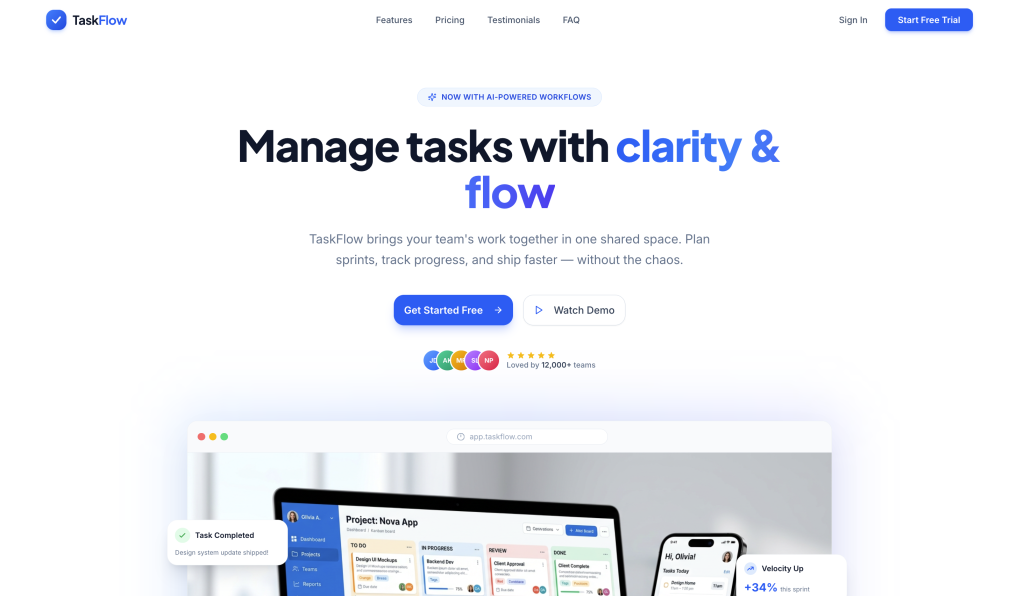 - Project management dashboard — Task overview, team activity feed, and deadline timeline